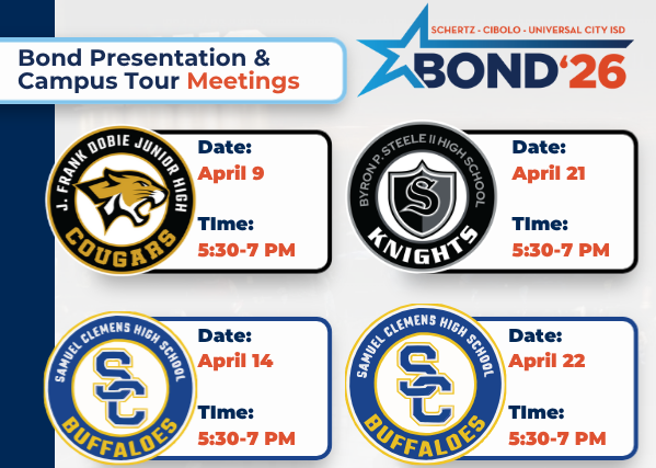 SCUC ISD is providing opportunities for community members to learn about the bond propositions and tour district facilities ahead of the election. All meetings will be from 5:30-7:00 p.m.
